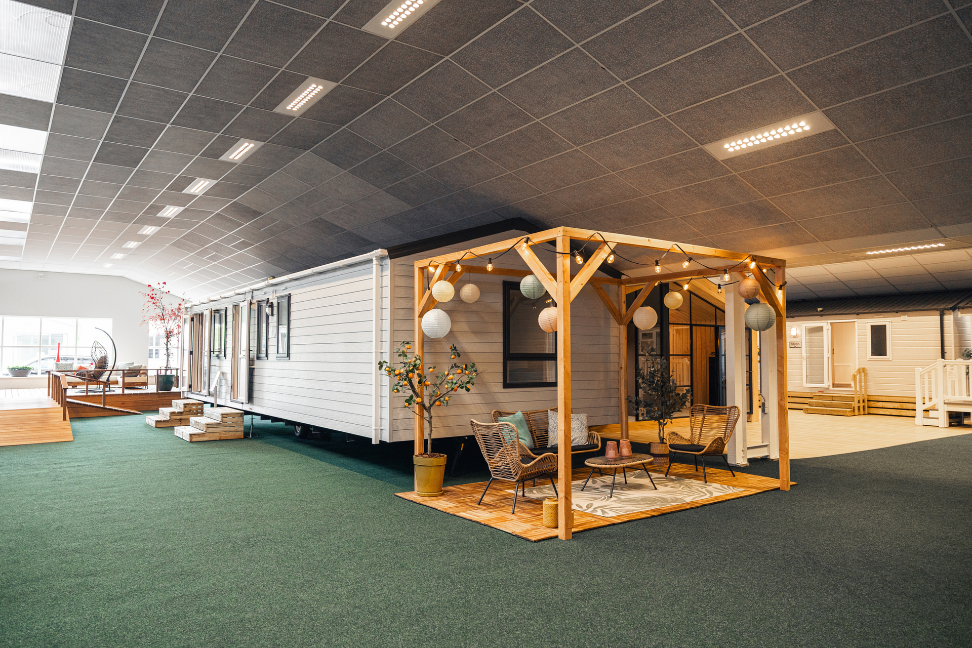 Besuchen Sie unser Ausstellungsgelände in Oterleek (20.000 m²), wenn Sie ein gebrauchtes Chalet oder Mobilheim kaufen möchten. Finden Sie heraus, welcher Grundriss am besten zu Ihnen passt und Ihre Traumunterkunft.